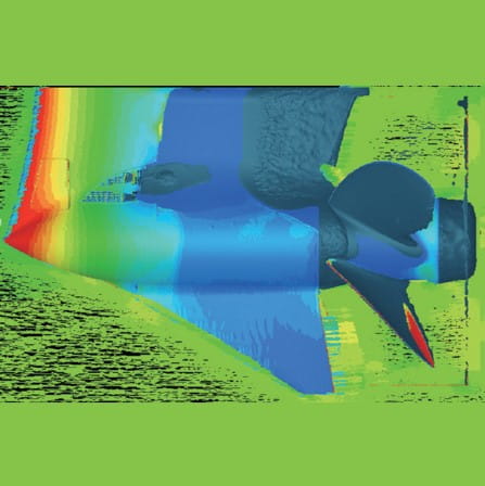 A redesigned low drag gear case developed to accommodate the new gears utilised in the Suzuki Selective Rotation system. The case itself is actually larger than the previous model to provide increased gear durability, however it is designed with a smoother, more hydrodynamic shape that allows it to move through the water with less drag and greater efficiency. Areas with the highest drag are indicated in red in the illustrations below. The comparison shows that the new design allows the lower unit to slice through the water with less drag.