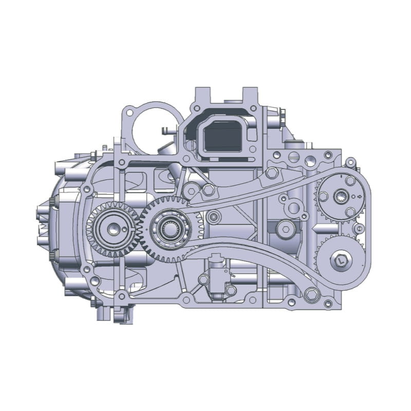 That’s due in part to our proven offset driveshaft system. This design places the crankshaft in front of the driveshaft through the use of intermediate gear reduction. In addition to providing an increase in power performance and adding to the compactness of the outboard, this system moves the outboard’s centre of gravity forward, resulting in better weight distribution and balance, better directional stability, and less vibration.